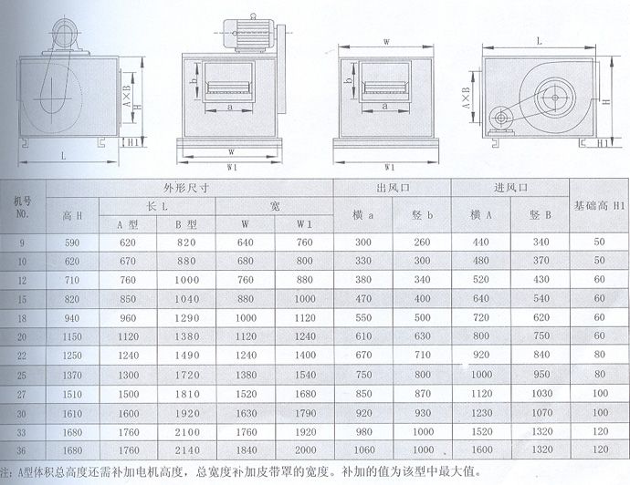 說明:1、因雙速電機(jī)制造標(biāo)準(zhǔn)所限,表中雙速風(fēng)機(jī)所配電機(jī)功率大于實(shí)際所耗率。