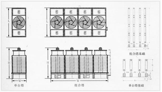 2.橫流式大型冷卻塔采用了組合設計,故可根據(jù)主機負荷的大小靈活調(diào)節(jié)開機的臺數(shù),以達到節(jié)約能源的目的。